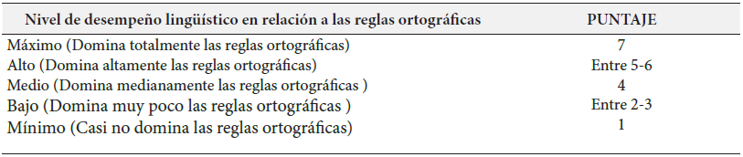alcanzadas o no en relación a las reglas ortográficas del idioma español. Para