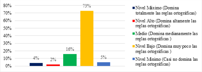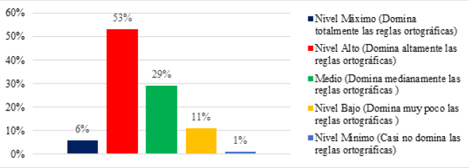 letra “h” y su correcto uso ortográfico, se tiene que hay un dominio medio de
